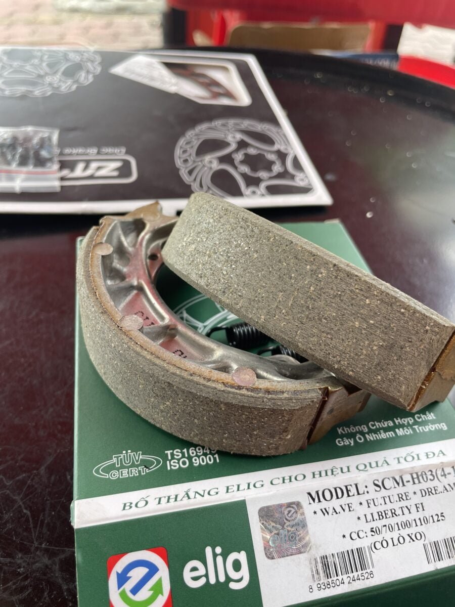 Với nguồn nguyên liệu tốt nhất được nhập khẩu từ các quốc gia và qua thử nghiệm bởi các trang thiết bị chính hãng Nhật Bản (tỷ lệ 1:1) về động thái, động lực và dị âm. Sản phẩm Bố thắng đĩa (phanh đĩa) xe máy Elig đã được công nhận đạt chuẩn yêu cầu thử nghiệm Mỹ, châu Âu, Nhật và bảo hiểm trách nhiệm sản phẩm toàn cầu giá trị 1.000.000 USD.